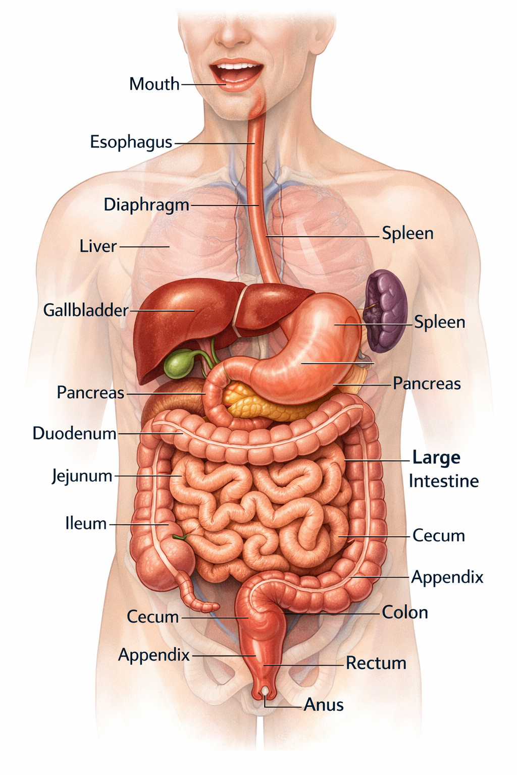 The digestive system is an intricate and extensive part of the body. It ranges all the way from the mouth to the rectum. The digestive system is responsible for absorbing essential nutrients and getting rid of waste.